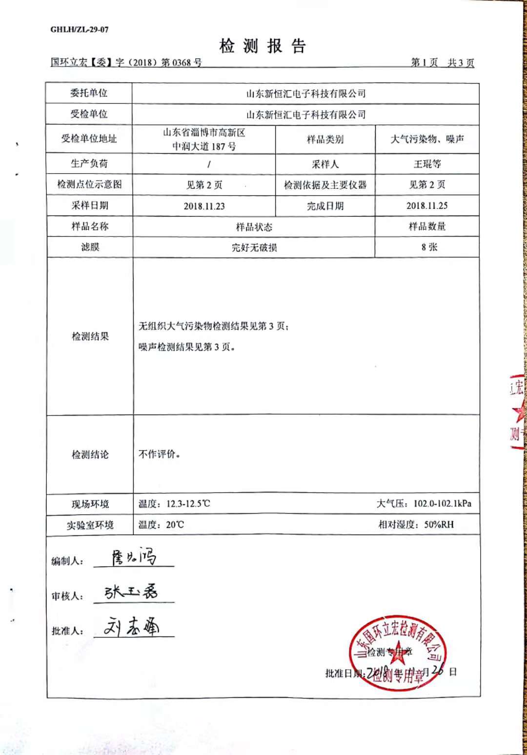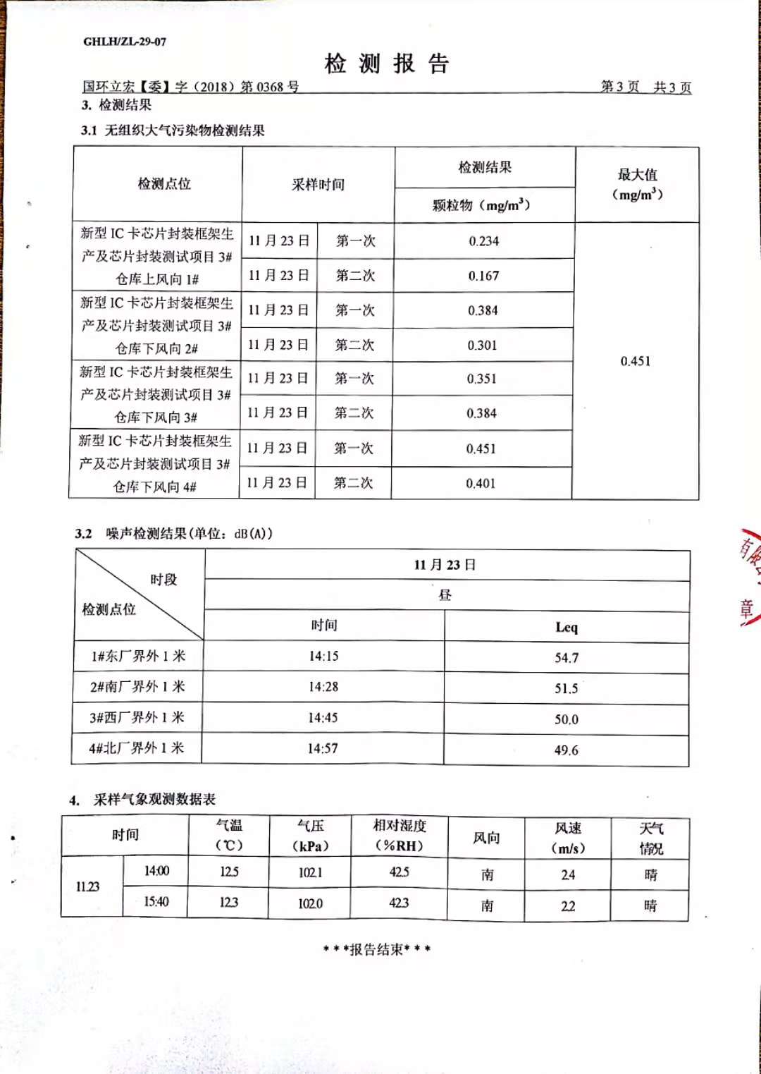 大氣污染物、噪聲檢測--新型IC卡芯片封裝框架生產(chǎn)及芯片封裝測試項目3#倉庫